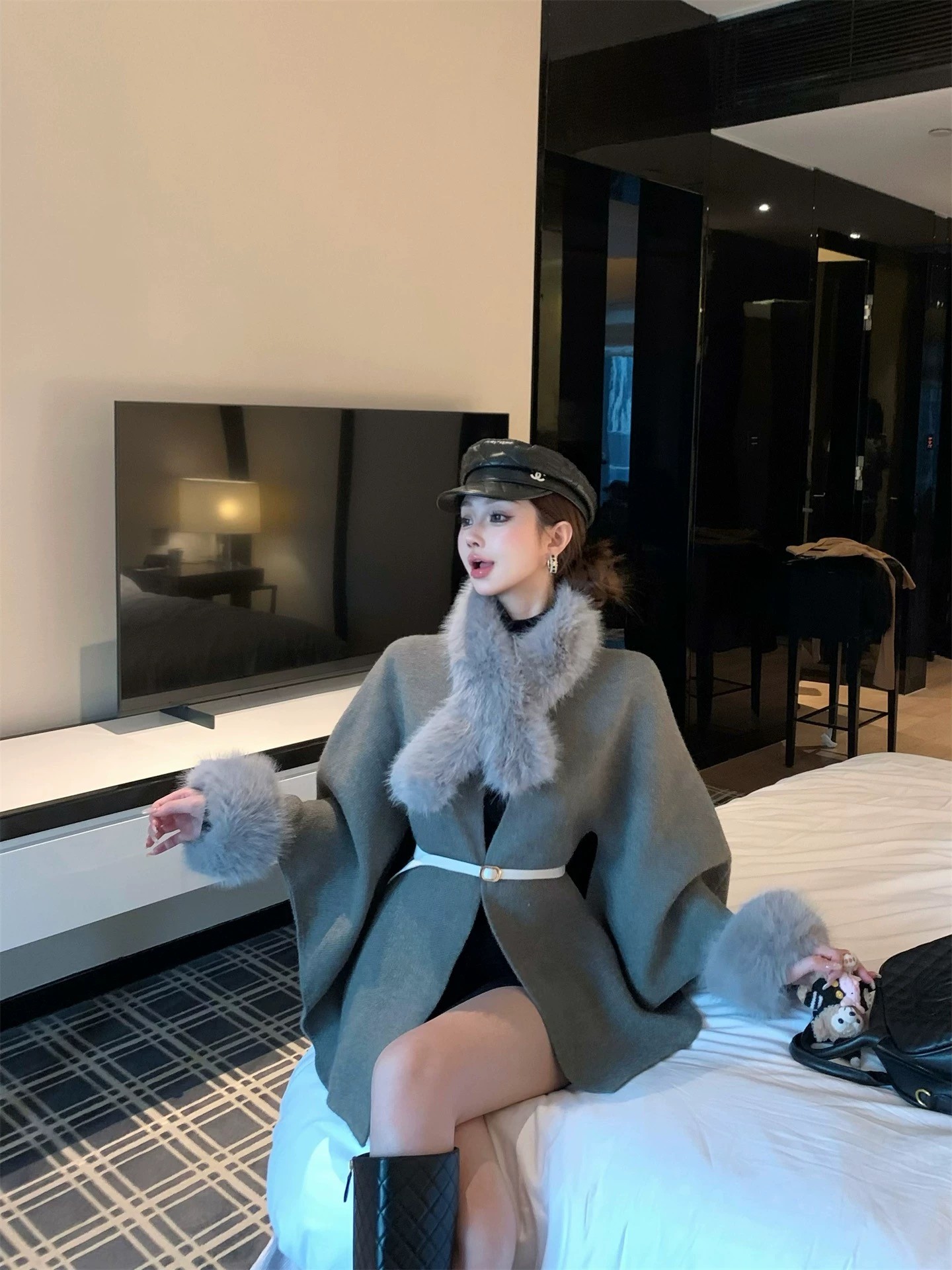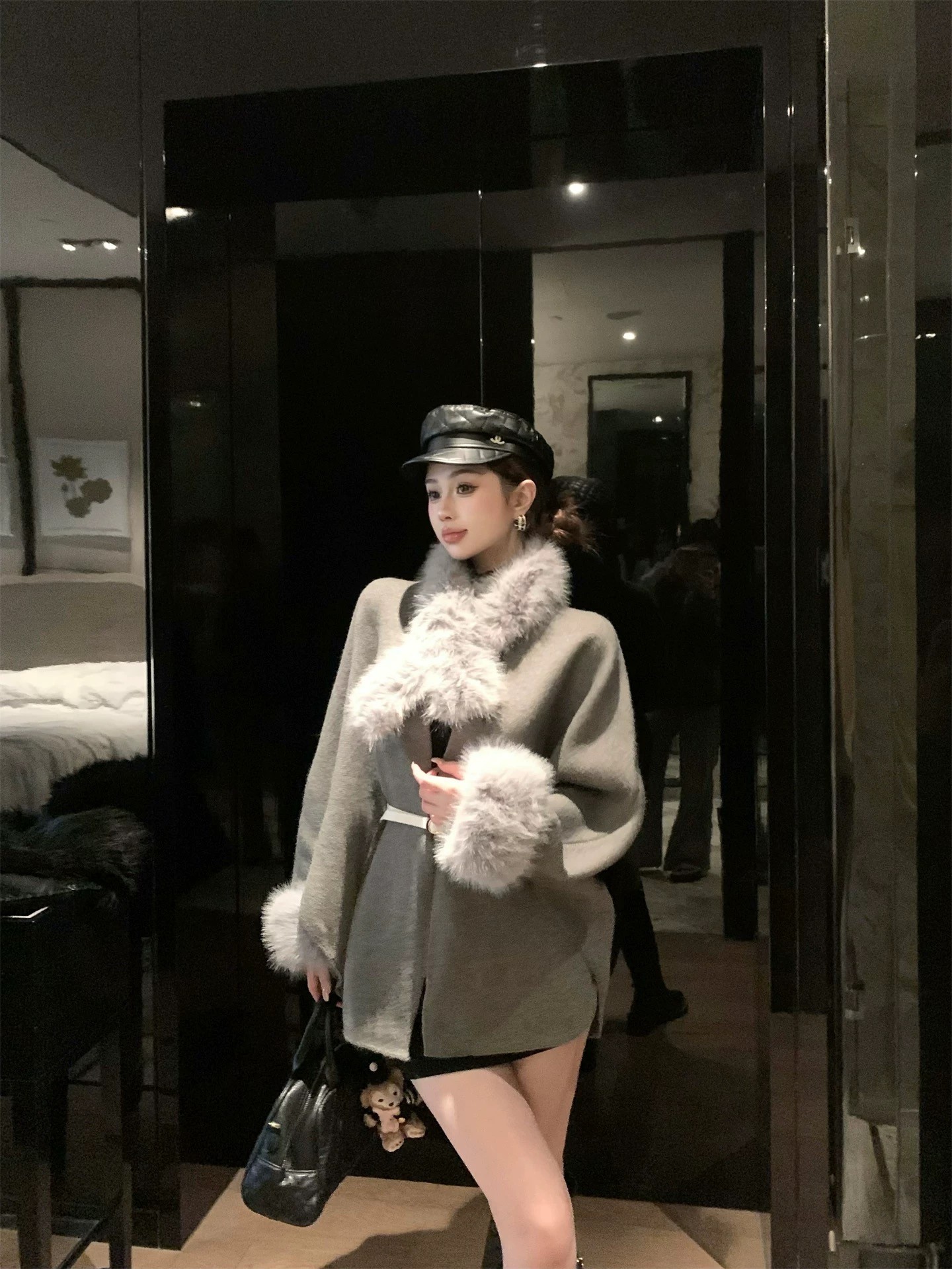 狐狸毛领口呢绒大衣