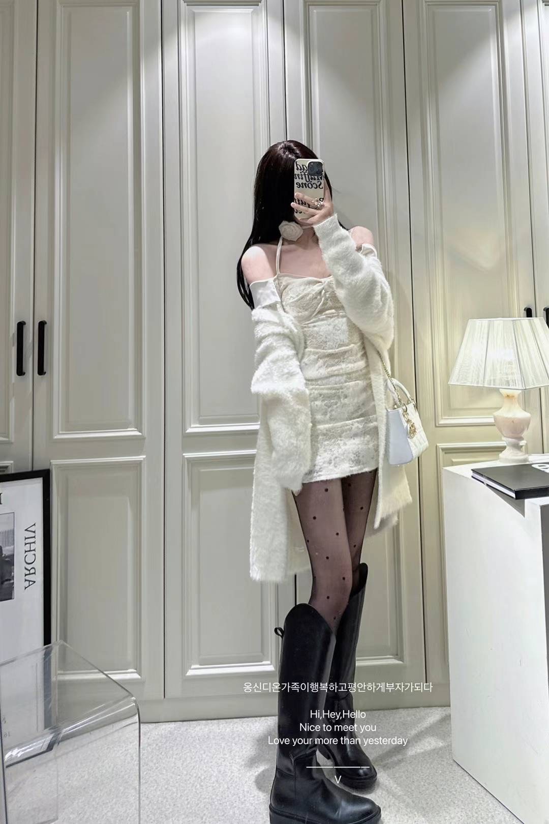 ILLUSORY 奶油褶皱连衣裙